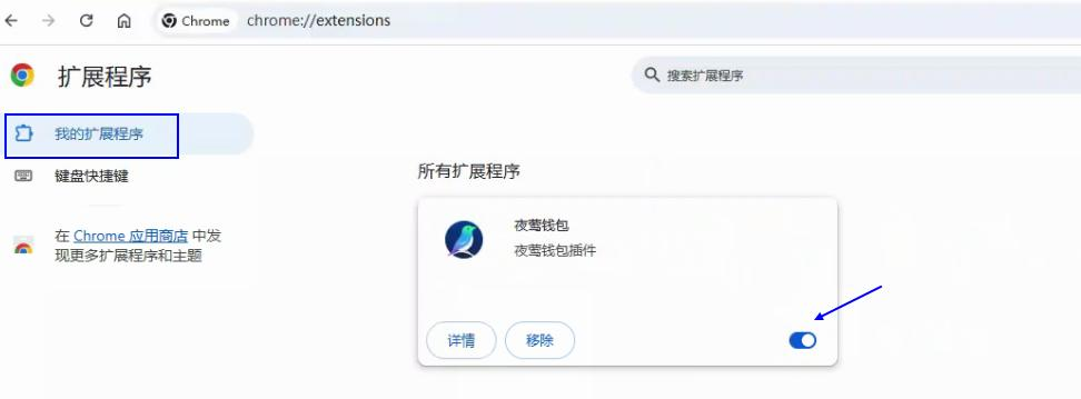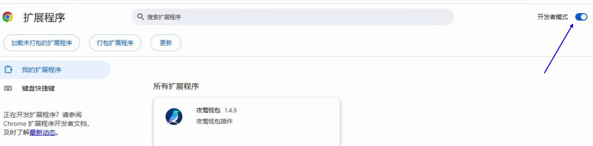 推荐将右上角的开发者模式打开,这样当夜莺钱包插件有更新时可以自动进行更新