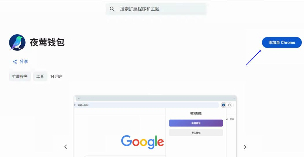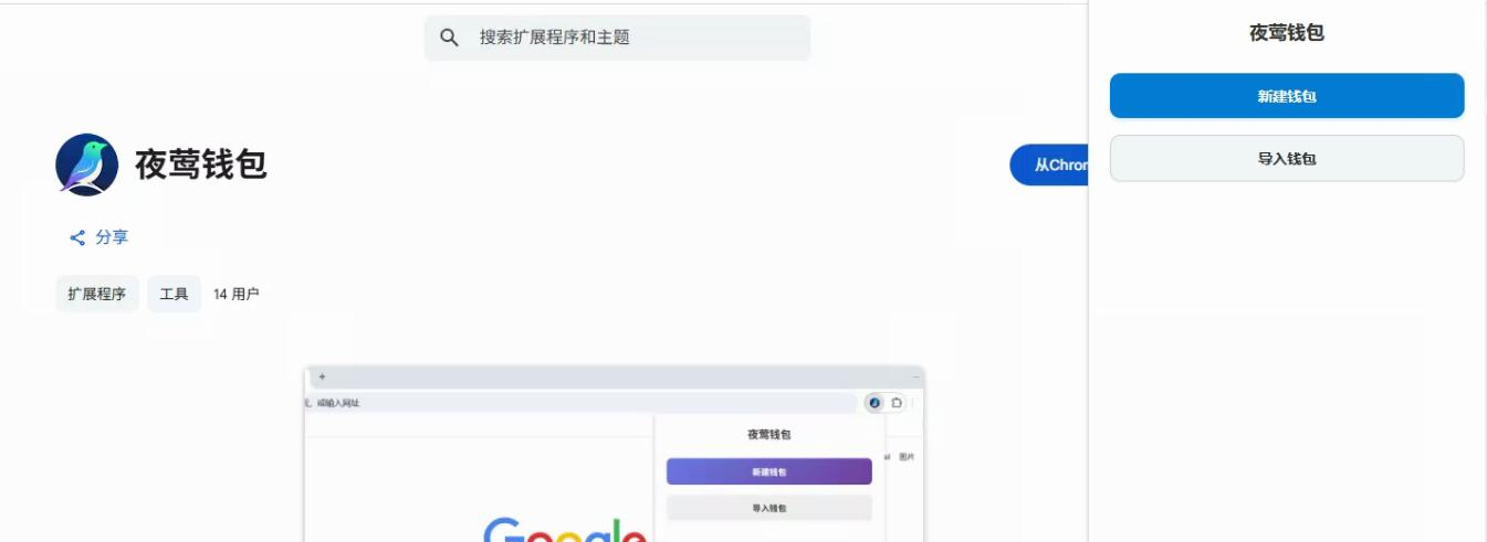 需要vpn能访问谷歌应用商店(网址 https://chromewebstore.google.com )在搜索框中输入 “夜莺钱包” 找到对应的插件进行安装