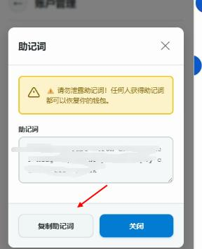 请妥善保管助记词,不要泄露给他人!