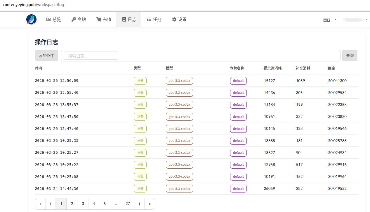 点击日志页面,可以查看每次使用的token消耗以及对应的花费,这样便于您更好的选择付费使用模式。