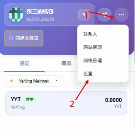 在钱包插件的界面上,点击带有"..."标识的按钮,转到设置页面