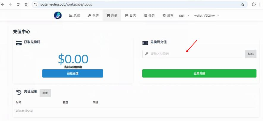 输入获取到的兑换码,点击立即兑换,即可完成充值操作。