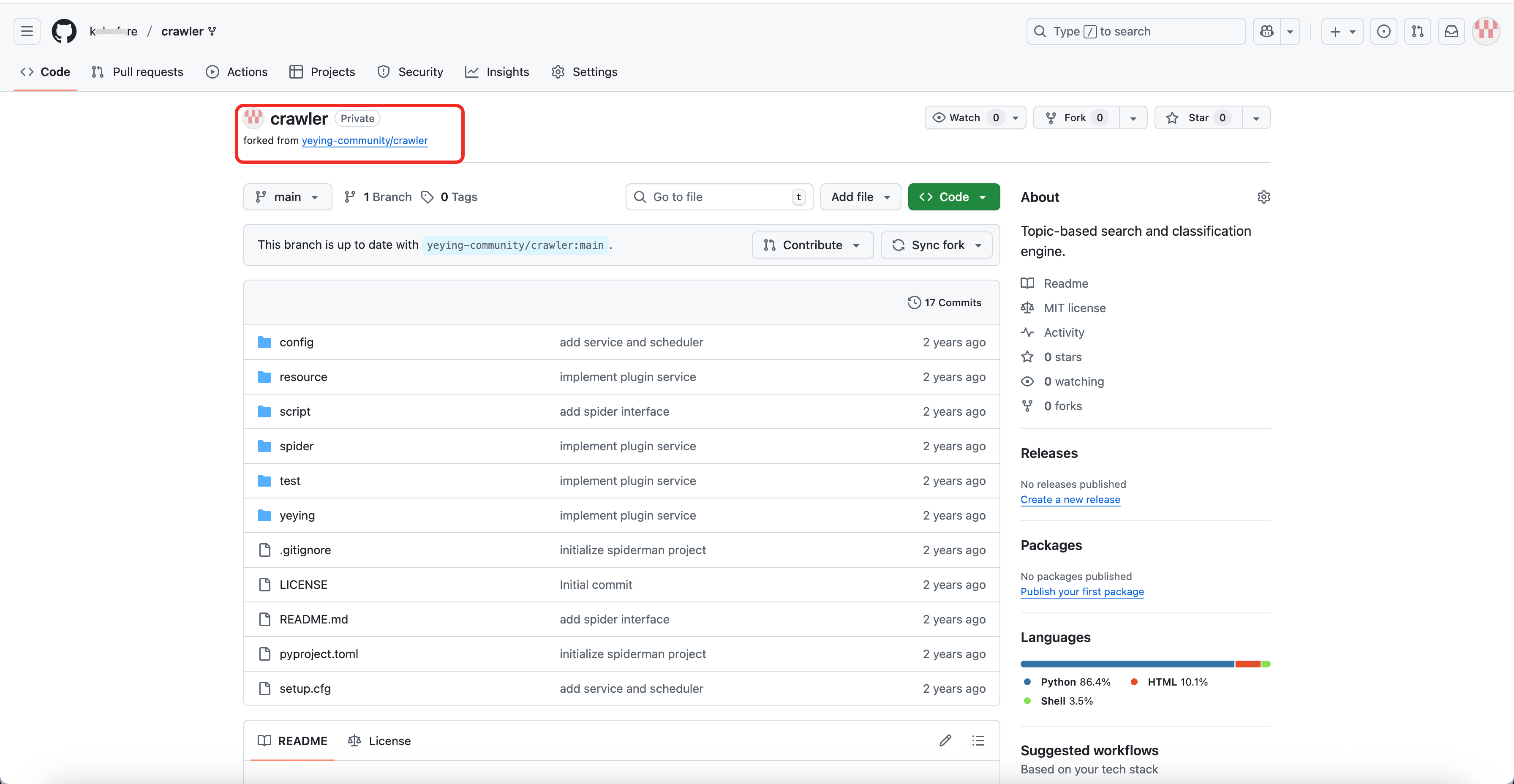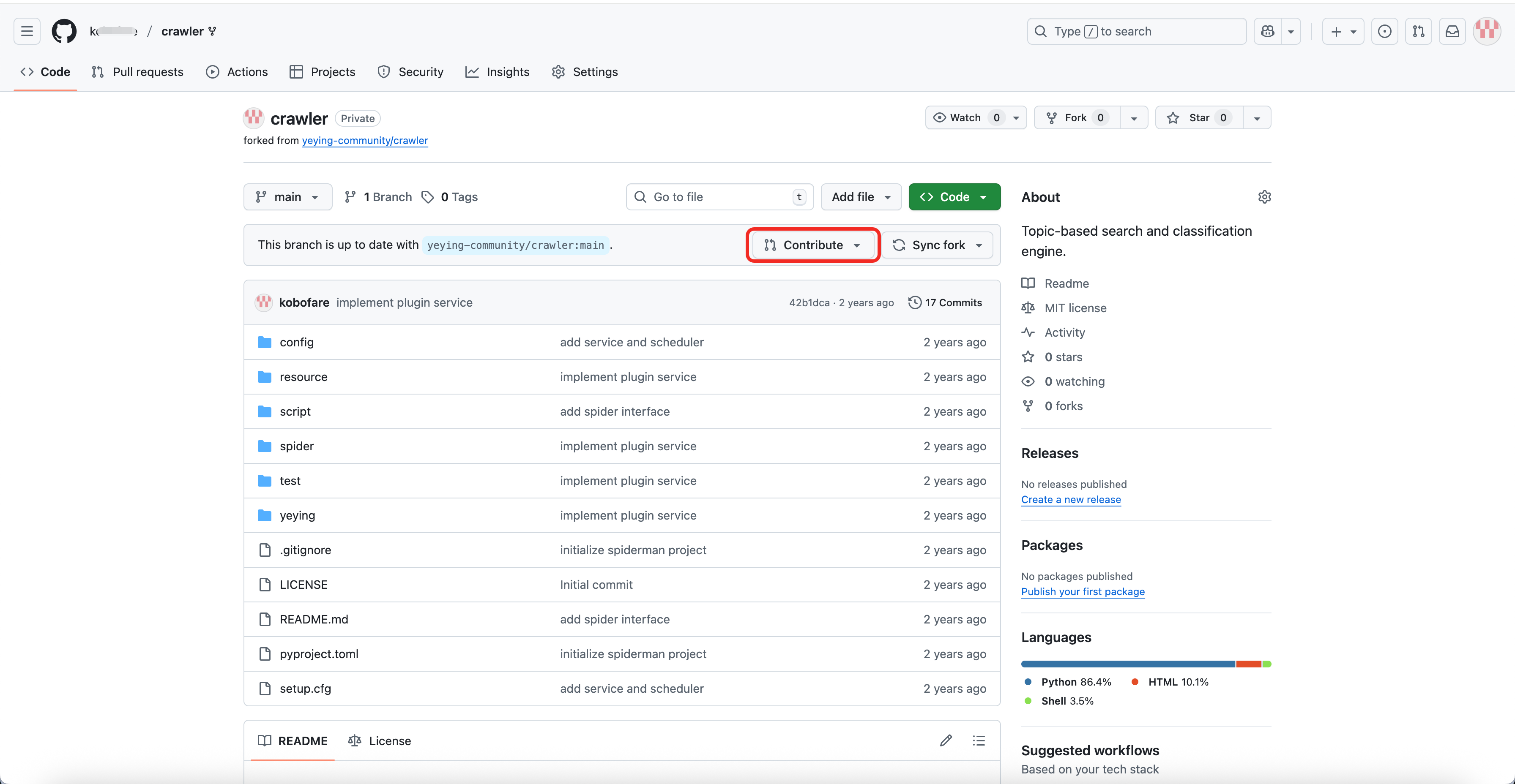 登陆github,同步社区仓库的的代码到个人仓库,确保个人仓库的代码处于最新状态