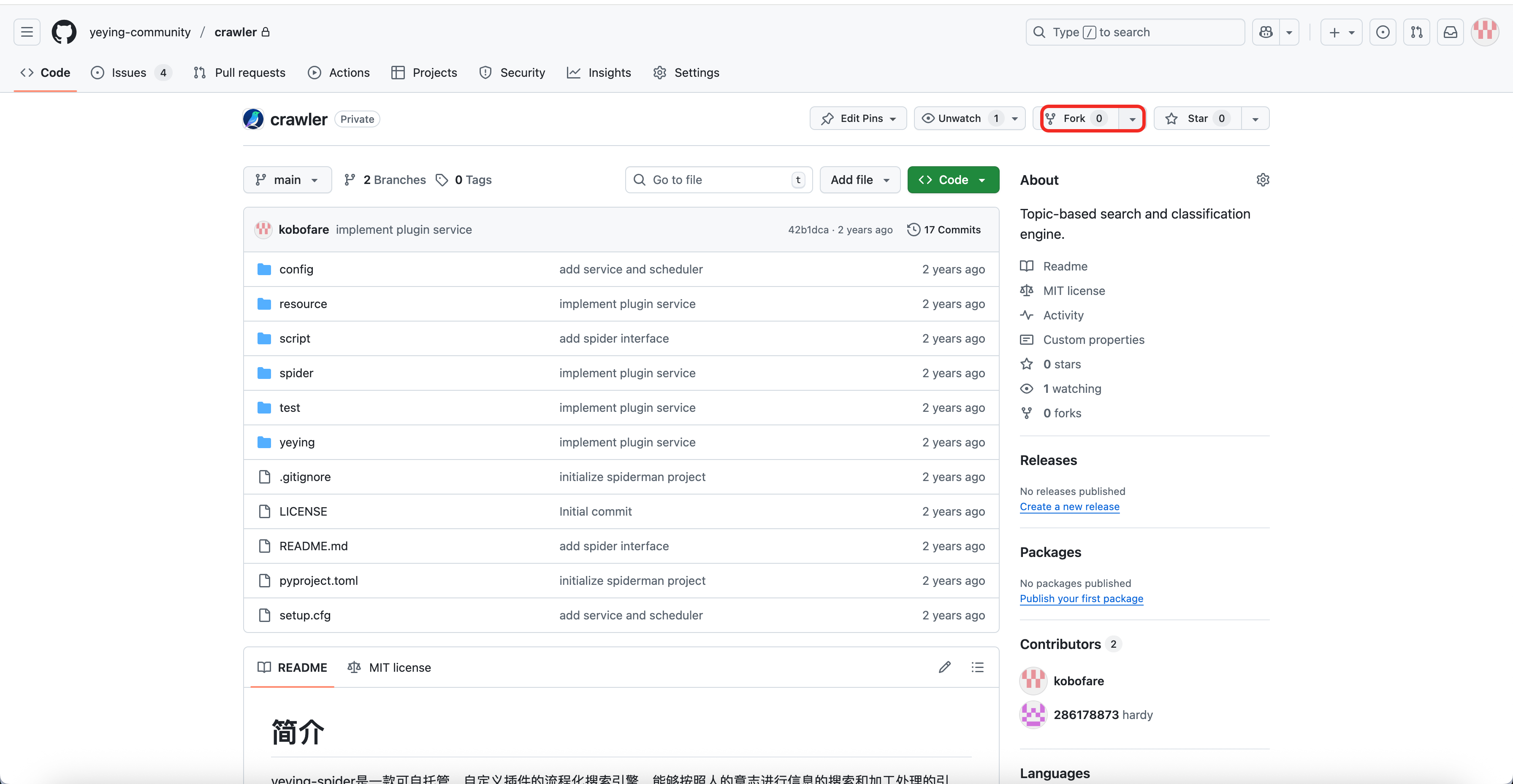 登陆github,搜索社区仓库中你想参与的项目,然后fork,比如: